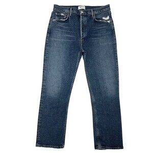 Agolde Riley High Rise Straight Ankle Crop Jeans Blue Denim Organic Cotton women's size 30