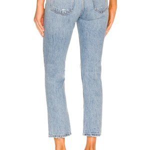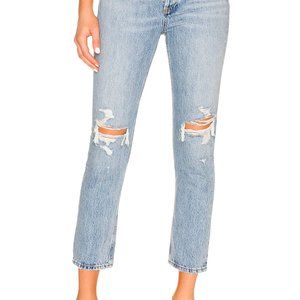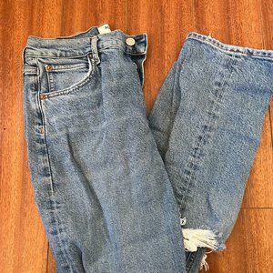 Cute light wash blue jeans with distressed knees - high quality denim, straight leg fit