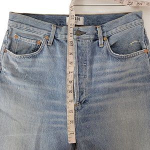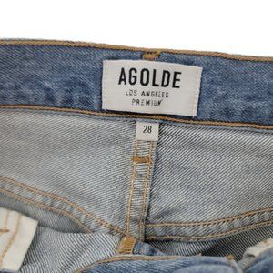 Agolde Riley High Rise Straight Crop Blue Size 28. Light distressing, button fly. Excellent condition. See photos for measurements.