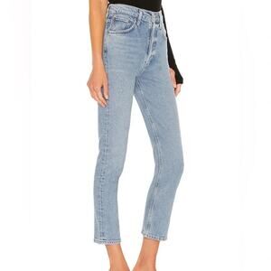 Agolde Riley High Rise Straight Crop Button Fly Jeans in Shiver Size 24