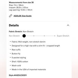 Agolde Riley High Rise Straight Crop Jeans size 26