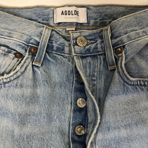 Agolde Riley High Rise Straight Crop Jeans Distressed Womens Size 27 in color Shatter