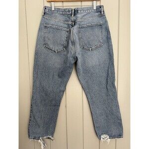 Agolde Riley High Rise Straight Crop Jeans Medium Wash Raw Fray Hems Cotton 32