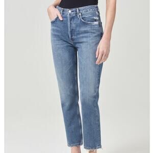 Agolde Riley High Rise Straight Crop Jeans Women's 32 Medium Wash Distressed