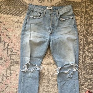 Agolde Riley High Rise Straight Crop Jeans in Clear Skies