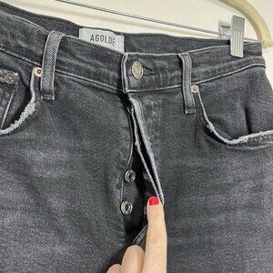 Agolde Riley High Rise Straight Crop Jeans in Panoramic Washed Black Size 28