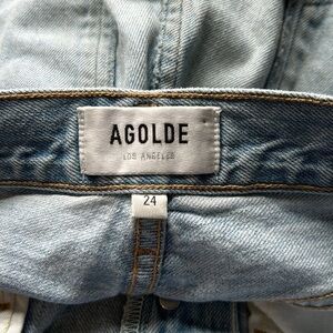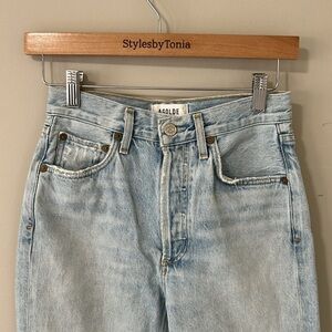 Agolde Riley High Rise Straight Crop in Blitz Button Fly Light Wash Sz 24