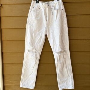 Agolde Riley High Rise Straight Crop in Slant White Size 25