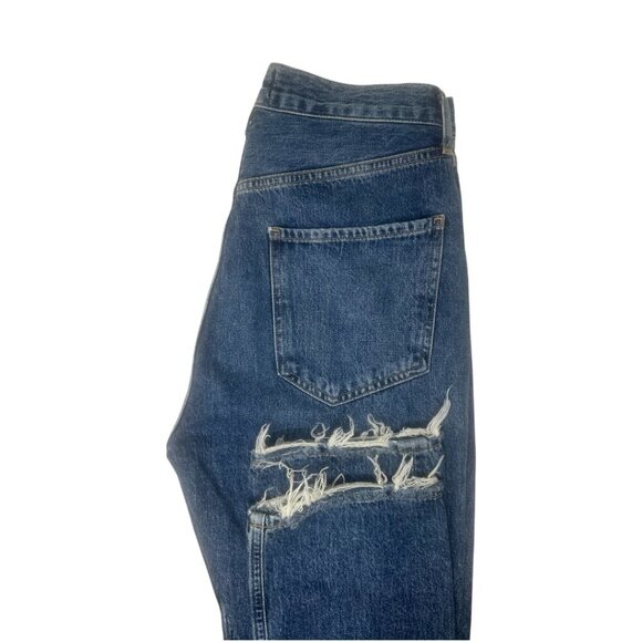 Agolde Riley High Rise Straight Leg Crop Jeans Size 27 In Frequency Wash, Blue Faded Denim, Distressed, Destroyed, Cotton