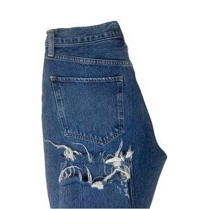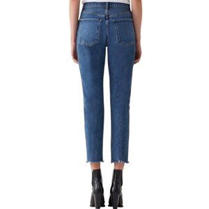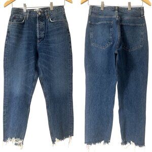 Agolde Riley High Rise Straight Leg Crop Jeans Size 27 In Veto Wash, Blue Faded Denim, Distressed, Destroyed, Stretch, Raw Frayed Hem