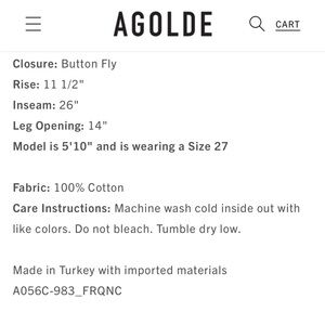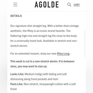 Agolde Riley High Rise Straight Leg Crop Jeans Size 29