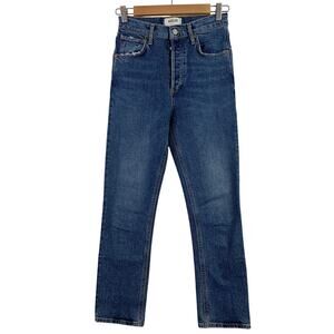 Agolde Riley High Rise Straight Leg Cropped Denim Jean Transfer Blue Size 24