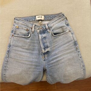 Chic straight leg jeans in a soft light blue. Perfect for casual outings. Offers a sleek and modern look.