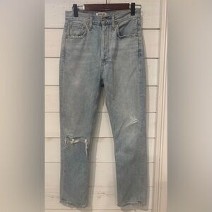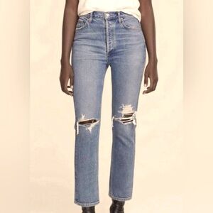 Agolde Riley High Rise Straight cropped . Distressed Blue Jeans in size 24 W