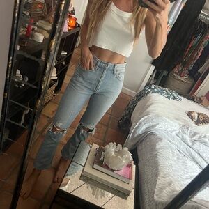 Distressed light wash crop