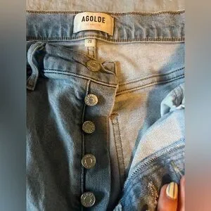 Agolde Riley Jeans. They do have stretch slightly as you wear them.