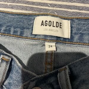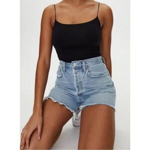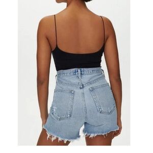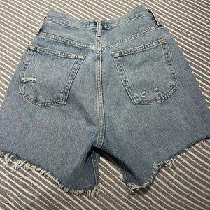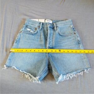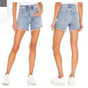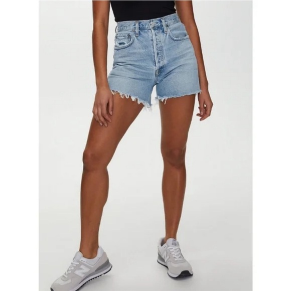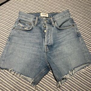 Frayed along the hems for an authentic worn-in feel, AGOLDE's Riley cut-off shorts are tailored in their vintage-inspired Groove wash denim. Belt loops. Zip fly and button closure. Five pocket styling.