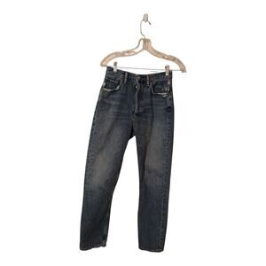 Agolde Riley Jeans Blue High Rise Straight Distressed Button Fly Crop Size 25