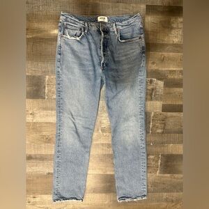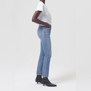 AGOLDE signature slim straight leg now with a longer inseam. With a better-than-vintage aesthetic, the Riley is an iconic brand favorite. The flattering high-rise and straight leg fits close to the body for a universally loved look.