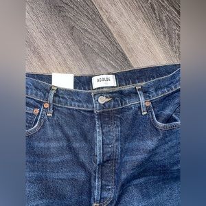 A full-length inseam updates the easy-to-love Riley jean by AGOLDE. This straight leg silhouette features a flattering high rise, button fly closure, and organic cotton-blend denim. The dark blue wash makes them an ultra-versatile closet staple.