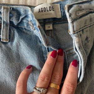 Agolde Riley short in the color groove. Size 26 but would fit a size 25 better. They run small.