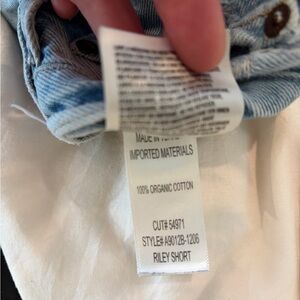 Agolde Riley Shorts. Small spot on the front and some additional fraying. 100% Organic Cotton