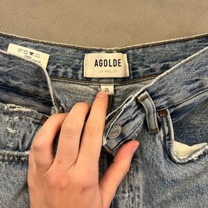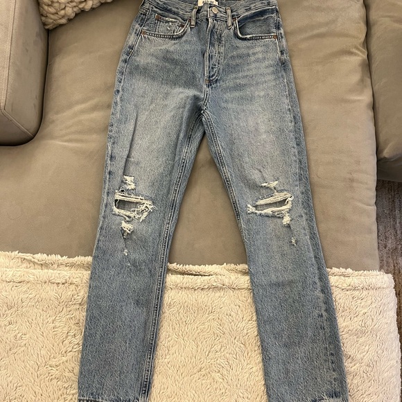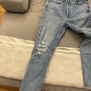 Agolde Riley crop Jean in light/medium wash with rips. Great condition. Only worn a few times