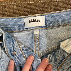 AGOLDE Riley jeans in awesome condition—worn less than 10 times. These jeans are so cute and stylish. Light wash. Perfect for day-to-day, or going out!