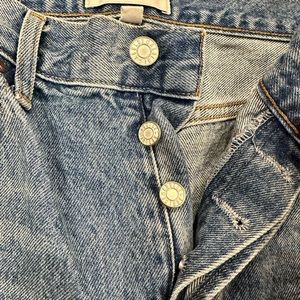 Blue jeans button fly with raw hem no stains or odors. Size 28
