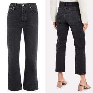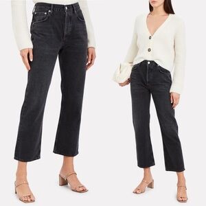 Agolde- Ripley Straight-Leg Jeans High Rise Black Photogram Size 25 Ankle Crop