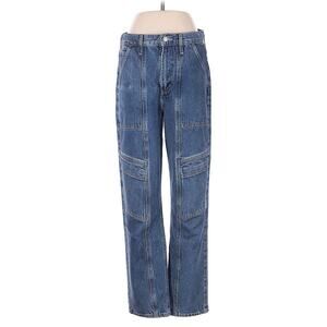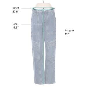 The Agolde SZ 28 Cooper Cargo Jeans in Regulation Blue with a 28" inseam are a stylish and versatile option for women's denim wear. These high-rise, 5-pocket jeans feature a classic zip closure and are made from 100% cotton denim. The solid color and medium wash add a casual yet chic look, perfect for all seasons. With pockets for added functionality and a regular fit, these designer jeans from AGOLDE are a fashionable choice for everyday wear.