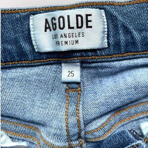 AGOLDE jeans, skinny leg jeans, blue denim pants, women’s casual jeans, medium wash denim, full-length jeans, size 25 jeans, ankle pants, stylish denim, casual wear jeans, streetwear, city, weekender, travel, chic, feminine, high-rise jeans, hi-rise jeans, high waist jeans, high-waisted jeans, indie, normcore, blue jeans, sophie jeans, sophia jeans, luxury