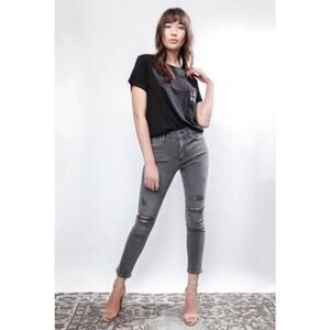 Agolde Sophie High Rise Distressed Crop Jeans in Washed Black Grey Size 30