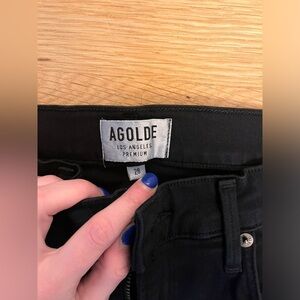 Size 28 Black ripped jeans from Agolde. Style name is Sophie, straight leg high waisted style