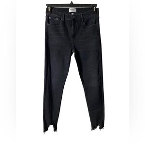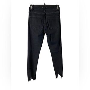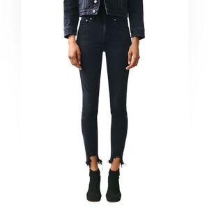 "Kick your weekend look into gear with these high-rise skinny jeans. This timeless and super flattering hi rise skinny from Agolde is meant to curve and elongate the legs. Washed black denim with distressed ankle detail. Fit is true to size. Model is wearing a size 25.