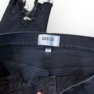 Agolde Sophie Mid-Rise Skinny Ankle Jeans in Shout Washed Black Raw Hem