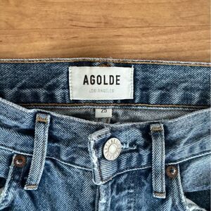 Agolde Denim Straight Leg Pinch Waist Jeans Size 25 Light Distressed