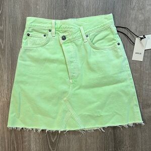 Agolde Sz 24 Criss Cross Jean Lime Green A-Line Mini Skirt Resort Wear