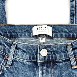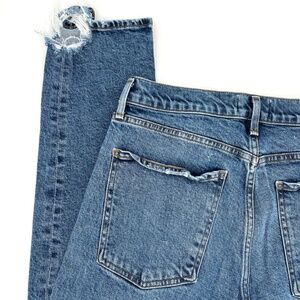 Classic Agolde Toni jeans in vintage blue. Distressed details for a modern edge.