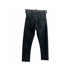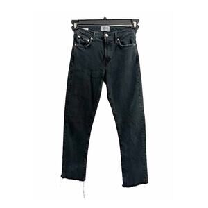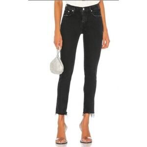 Agolde Toni Mid Rise Slim Straight Ankle Fray Jeans Feral Black 24