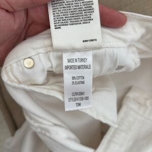 Make a modern yet classically-cool statement in these crisp-white skinnies, updated with a high waist and edgy distressing.