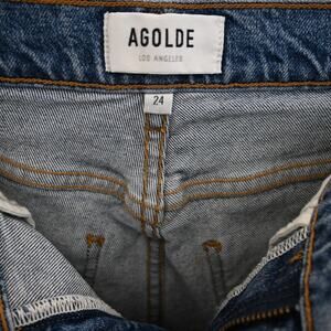 Agolde Toni Straight Jeans Size 24 Blue Medium Wash Mid Rise Pockets Stretch