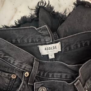 Agolde Women’s Criss Cross Black Denim Cut Off Jean Shorts Asymmetrical Waist 25