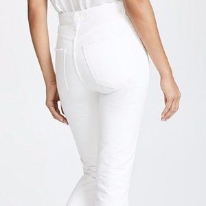 Elegant high rise jeans. Bright white hue. Versatile and chic.
