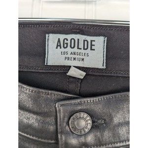 Agolde Womens Waxed Jeans Shiny Black Stretch Denim Size 27