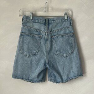 Agolde criss cross jean shorts size 23 revolve aritzia button fly long jorts