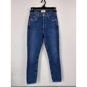 Agolde women's 24 waist medium wash high rise button fly skinny jeans