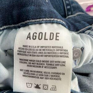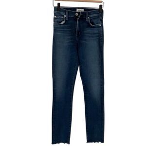 Agolde Blue Denim Stretch Raw Hem Sophie Crop Skinny Jeans Medium Wash Size 25