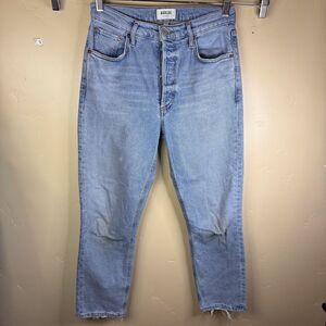 Agolde Los Angeles Womens Straight Leg Distressed Button Fly Jean Size 27 Denim
