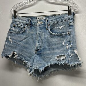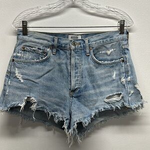 Agolde Parker Vintage Cut Off Short Distressed Denim Jean Shorts Button Fly Blue Jeans 26